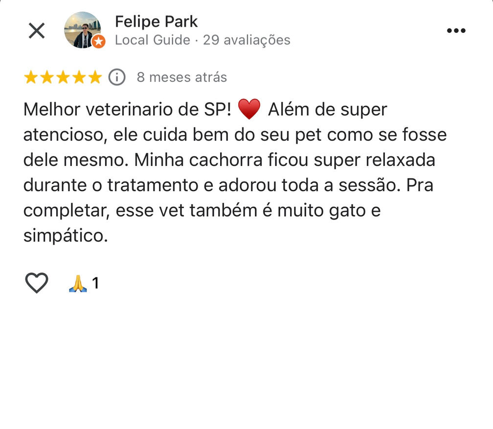 - Atendimento especializado para pets idosos, atletas e com doenças crônicasMinha missão é proporcionar mais saúde, equilíbrio e bem-estar para o seu pet, sempre com muito carinho e compromisso.