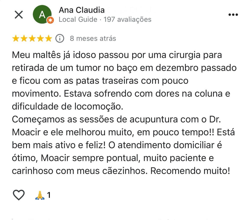 Sou Moacir Ienkot, Médico Veterinário especializado em Acupuntura Veterinária, com 12 anos de experiência no cuidado e bem-estar dos animais. Ao longo da minha trajetória, ajudei inúmeros cães e gatos a reduzir dores, melhorar a mobilidade e recuperar a qualidade de vida através da medicina tradicional chinesa e terapias integrativas.Formação e Especializações: